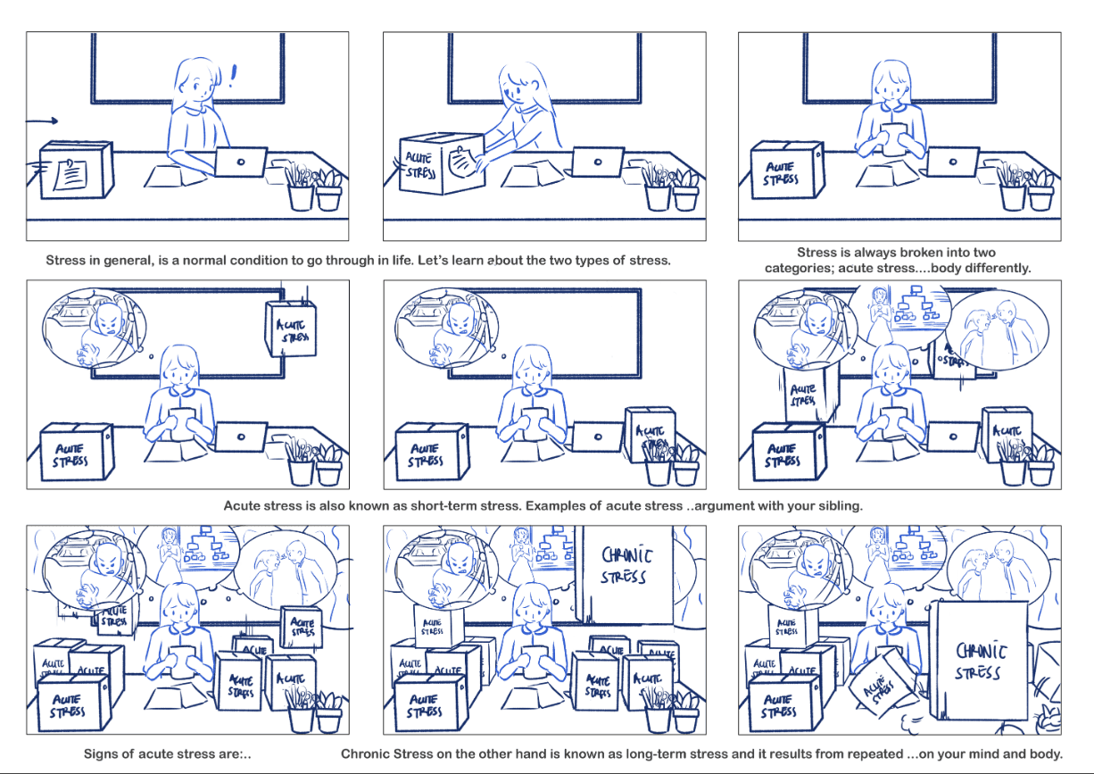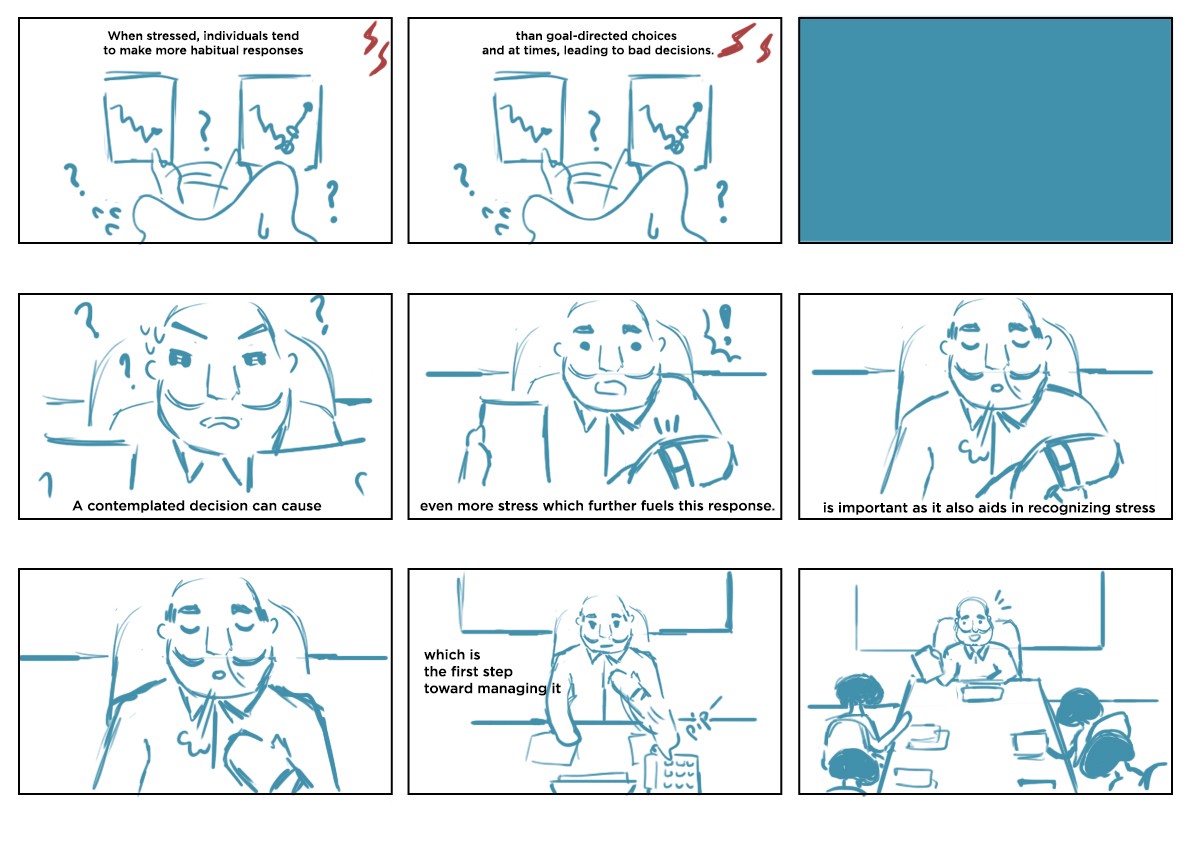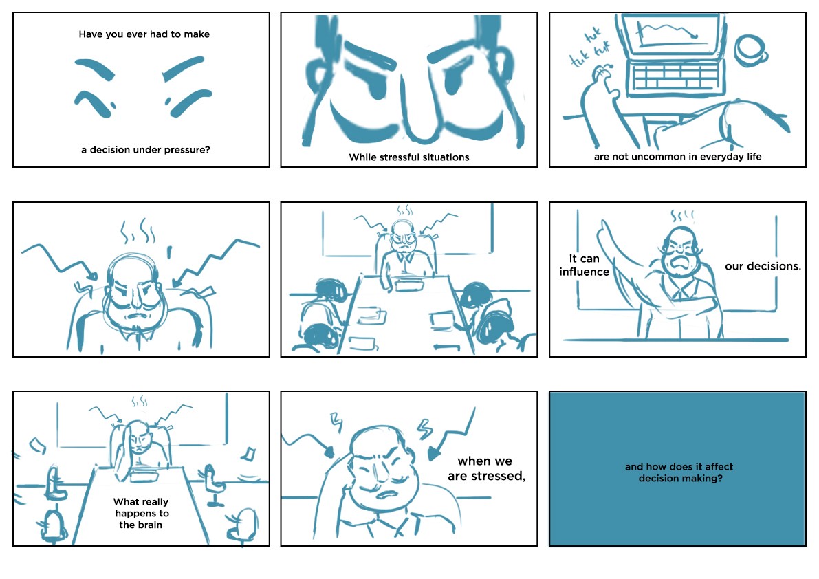This video explains how stress impacts decision-making. My role was to create a short animated video, starting from concept development and storyboard creation to the final animation.