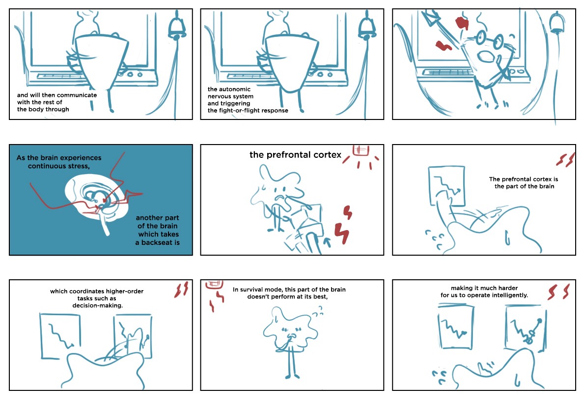 The goal of this video is to explain the differences between acute and chronic stress in a way that’s easy for viewers to understand. My responsibilities included creating the video from start to finish, starting with a storyboard, followed by style frames, and then animating until the final video was complete.